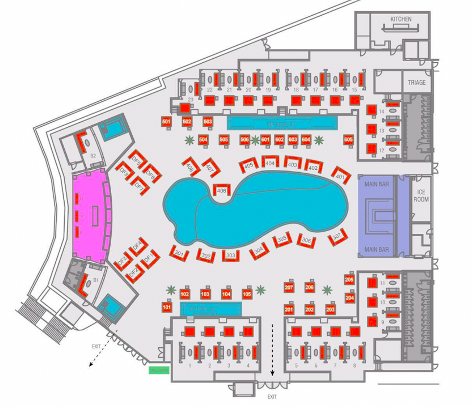 Daybed, Cabana and Bungalow Pricing varies depending on the demand and the event for that day. Get a quote here.