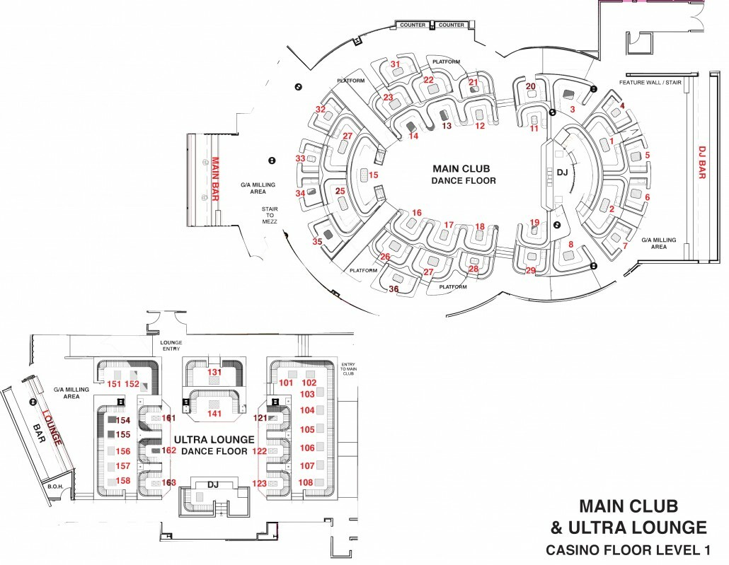 For the Main Room of Omnia: The best tables are located in main room (although Skybox 2nd floor is also an amazing choice) would have to be any table section located in the 20's (behind the dancefloor table) Omnia dancefloor tables can get fairly crowded these tables have a crazy view of the chandelier and you can people watch in peace. Second tier tables at Omnia usually run about a $3,000-5,000 minimum on busier nights.